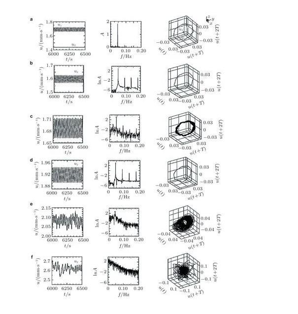 (4)目前對(duì)于液層界面張力梯度驅(qū)動(dòng)對(duì)流向湍流轉(zhuǎn)捩的研究仍不夠完善,在對(duì)超臨界轉(zhuǎn)捩階段的實(shí)驗(yàn)及數(shù)值模擬研究中觀察到了許多復(fù)雜的轉(zhuǎn)捩模式,但大多只是現(xiàn)象上的描述,并未總結(jié)出普遍的規(guī)律;對(duì)于流動(dòng)最終能否通向混沌暫無(wú)普適的判據(jù),流動(dòng)通向混沌過(guò)程中出現(xiàn)的諸如陣發(fā)、鎖頻等特殊的現(xiàn)象也尚未有更本質(zhì)的機(jī)理上的解釋。總之,對(duì)于轉(zhuǎn)捩規(guī)律的深入理解,需要界面張力梯度驅(qū)動(dòng)對(duì)流這一非線(xiàn)性模型在理論上的進(jìn)一步發(fā)展,未來(lái)道阻且長(zhǎng)。