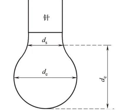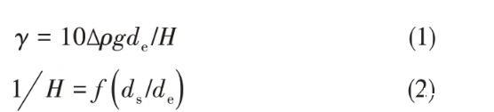 式中,γ為界面張力,mN/m;,Δρ為兩相密度差,kg/m3;g為重力加速度,g=9.80 m/s2;de為懸滴最大直徑,m。油滴尺寸如圖1標(biāo)注,ds為距油滴頂點(diǎn)垂直距離為de處油滴截面直徑,m。1H可由Andreas等建立的函數(shù)表得到。