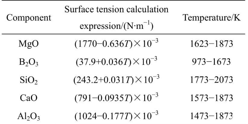 熱力學(xué)模型計算MgO-B2O3-SiO2-CaOAl2O3富硼渣表面張力(一)