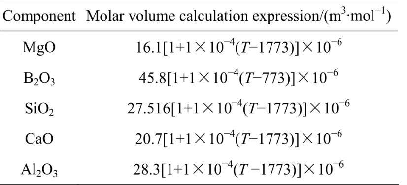 表3純組元摩爾體積與溫度的關(guān)系