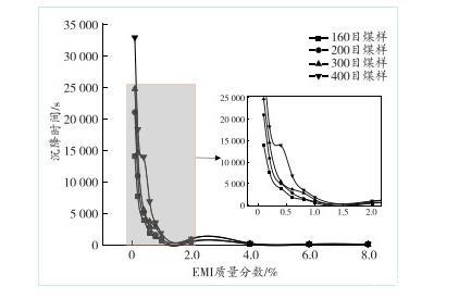 圖7煤塵沉降時(shí)間與EMI質(zhì)量分?jǐn)?shù)的關(guān)系