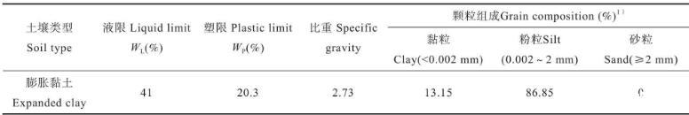 供試土壤選用有明顯脹縮變形的灰白色膨脹黏土,土樣取自云南農業大學附近的某風化土邊坡,土樣的基本性質如表1所示。取回的土樣經過風干、碾碎后過2 mm篩備用。