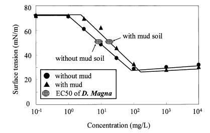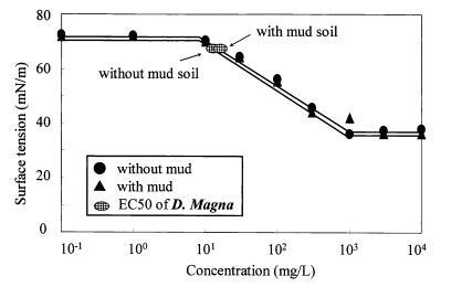 圖 11 泥土存在對(duì)地表的影響 LAS 和有毒表面張力的張力曲線 Daphnia Magna 的價(jià)值。