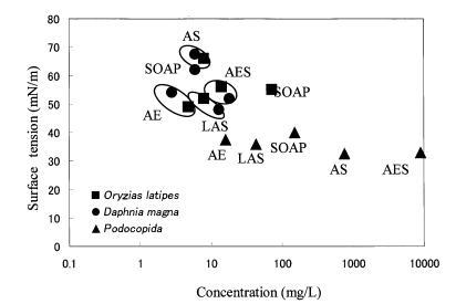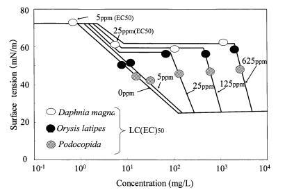 水稻和大水蚤的gtox值很大 因表面活性劑的種類而異。 結(jié)果,很明顯,一個(gè) 表面活性劑的急性水生毒性不能簡(jiǎn)單地 與表面活性劑溶液的表面張力有關(guān), 忽略表面活性劑的種類。