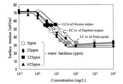 圖 9 水硬度對(duì)表面張力的影響 烷基硫酸鹽和有毒表面張力曲線 Daphnia Magna 的價(jià)值。