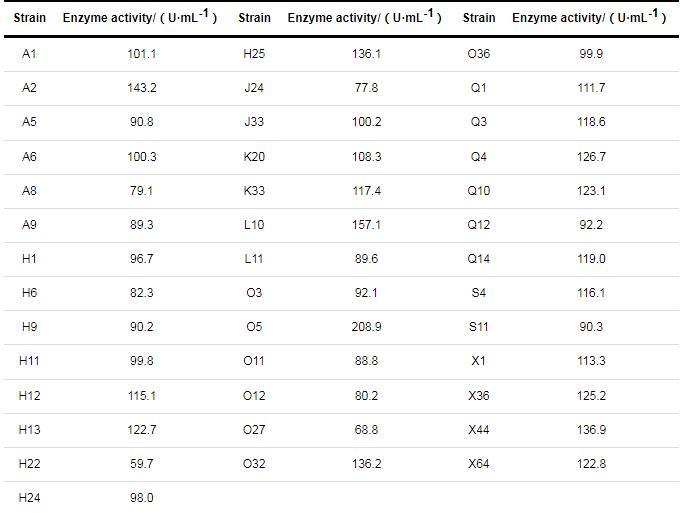 表1已分離的40株菌所產β-甘露聚糖酶的酶活力