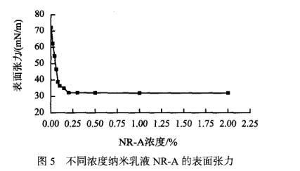 圖5不同濃度納米乳液NR-A的表面張力