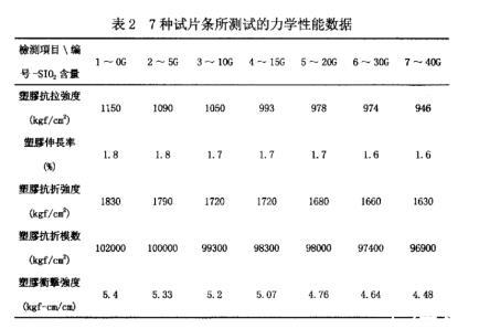 表2 7種試片條所測試的力學性能數據