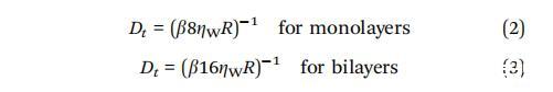 其中 ZW = 0.001 N sm? 2 是水的粘度,Zm 是 二維膜粘度,R是半徑 正在分析的域。 對于雙層,包括因子二 在分母中,因為水存在于分母的兩側(cè) 膜.54