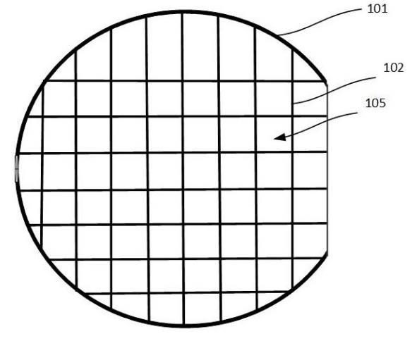 步驟2),依次對各組中的腐蝕區(qū)域105內(nèi)的晶圓104表面進(jìn)行腐蝕,直至完成整片晶圓104的腐蝕。