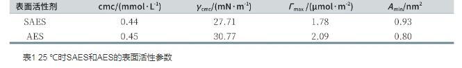 表1 25℃時SAES和AES的表面活性參數