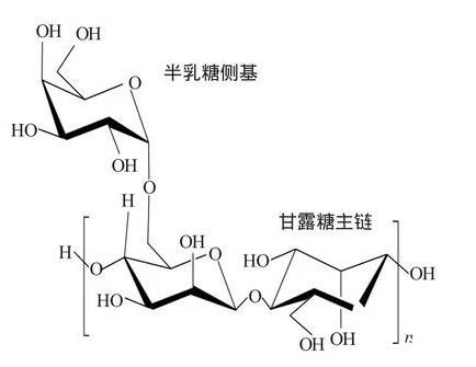 本實驗使用的主要壓裂液稠化劑是羥丙基胍膠,主要原料天然植物瓜爾膠豆胚乳中提取的一種天然高分子,由甘露糖和半乳糖兩種單糖組成的多糖,如圖1。分子主鏈由甘露糖單元通過β-1,4苷鍵連接,側基的半乳糖通過α-1,6苷鍵連接到分子主鏈上。