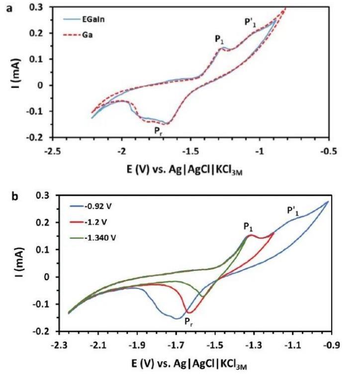 電化學氧化作用可以誘導液態金屬表面生成不同的氧化物或氫氧化物薄層,而這種表面變化對界面張力的影響非常顯著。例如,研究發現,氧化鎵薄膜會在特定的電位下破裂并溶解,使得液態金屬的表面張力急劇下降。通過控制電化學氧化的電位,能夠在微觀層面實現液態金屬的“開關”效應,有望用于開發可控液態金屬元件。