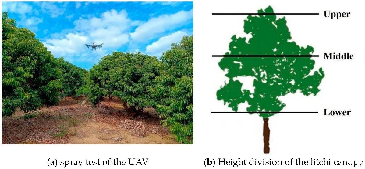 圖1.T30植保無人機噴霧機在荔枝園噴霧沉積測量。