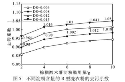 圖5不同淀粉含量的B型洗衣粉的去污系數(shù)