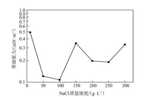 圖4含不同濃度NaCl的TPHS溶液與原油間的界面張力(TPHS質量分數0.3%)