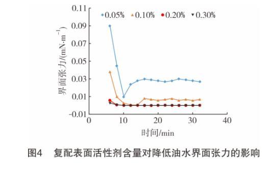 2.4復配表面活性劑含量對降低油水界面張力的影響