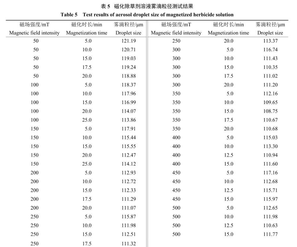 表5磁化除草劑溶液霧滴粒徑測試結果
