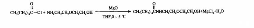 測(cè)定未反應(yīng)二甘醇胺的含量,確定棕櫚酸二甘醇酰胺的轉(zhuǎn)化率,通過(guò)紅外光譜、質(zhì)譜和核磁確定棕櫚酸二甘醇酰胺的結(jié)構(gòu)。