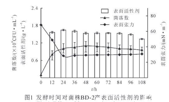 2.2發(fā)酵時間對菌株BD-2產(chǎn)表面活性劑的影響