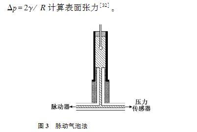脈動(dòng)氣泡法表面張力計(jì)已被廣泛用于天然表面活性劑或肺表面活性劑相關(guān)的化合物的研究。其可以通過(guò)設(shè)定脈動(dòng)率與呼吸率相同,從而模擬呼吸動(dòng)力學(xué)。測(cè)試時(shí)間較短,一般在5min內(nèi)。但它也存在一些缺點(diǎn),當(dāng)待測(cè)液表面分子最大程度的壓縮在一起時(shí),氣泡不再保持球形,故基于球形氣泡的假設(shè)來(lái)計(jì)算表面張力會(huì)帶來(lái)較大的誤差。另外,與Langmuir?Wilhelmy天平法一樣,膜表面泄漏的問(wèn)題仍然存在。
