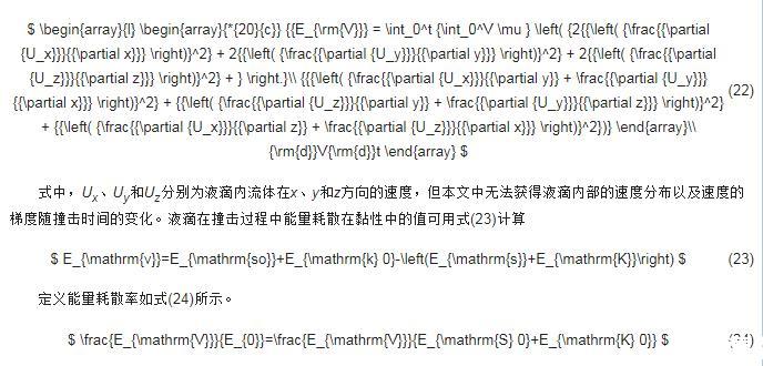 可用式(22)計算液滴在撞擊過程中能量耗散在黏性中的值