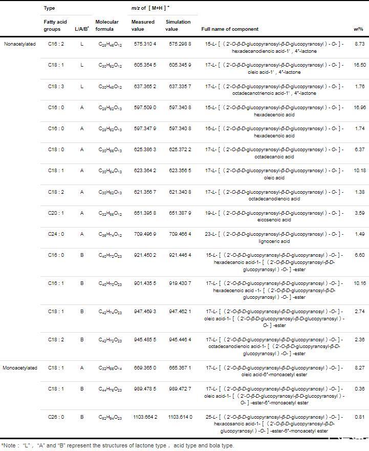 表2去乙酰化SLs同系物組分和質量分數(Continued from previous page)
