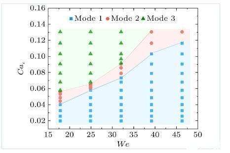 圖5不同韋伯數下的液滴模態圖