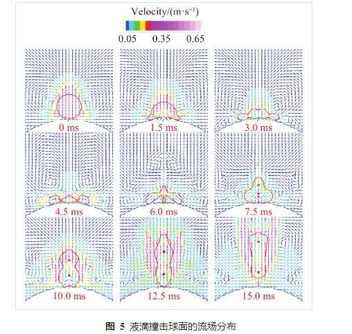 圖5液滴撞擊球面的流場分布