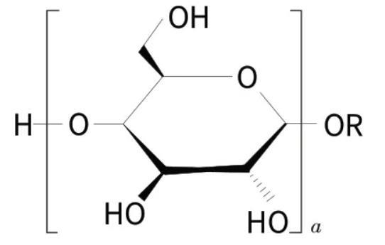 烷基糖苷(APG,結構式如下,其中a是平均聚合度)是一類可生物降解的天然非離子表面活性劑,被國際公認為“綠色”功能表面活性劑。烷基糖苷具有優良的配伍性能,起泡性好(泡沫豐富細膩),耐強堿和電解質,有良好的增稠能力,與皮膚相容性好,無毒,刺激性極低。