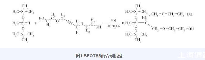 丁炔二醇乙氧基化物(BEO)分子結構中含有炔基和兩個醇羥基,具有低泡和潤濕性好的優點,在涂料工業中可配合三硅氧烷表面活性劑作為潤濕劑和流平劑。由于BEO分子中具有不飽和的炔基,可與七甲基三硅氧烷及含氫聚硅氧烷發生硅氫加成反應,合成具有兩條親水基團的有機硅表面活性劑。所得產物結合了有機硅表面活性劑和炔二醇表面活性劑的優點,在消泡性、潤濕性、耐水解性方面更有優勢,近年來逐漸受到研究者的關注。