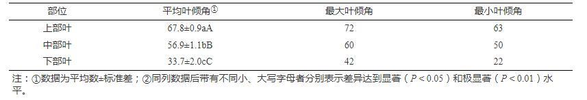 表1不同部位煙葉葉傾角的比較