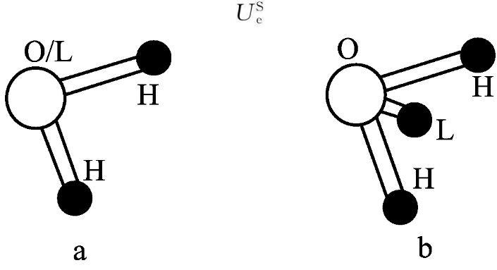 圖3a中為SPC、SPCE和TIP3P模型,b為T(mén)IP4P模型(L:負(fù)電荷作用點(diǎn);H:正電荷作用點(diǎn))