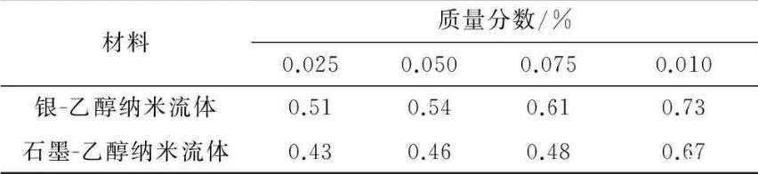 1)隨著質(zhì)量分?jǐn)?shù)增加到0.1%的過(guò)程中,納米流體表面張力下降了17%——25%,電導(dǎo)率卻升高了40%——60%.兩者的變化導(dǎo)致納米流體的τc/τH隨質(zhì)量分?jǐn)?shù)的升高呈現(xiàn)上升趨勢(shì)。