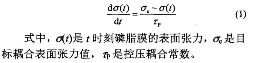 式中,σ(t)是t時刻磷脂膜的表面張力,σe是目標耦合表面張力值,τP是控壓耦合常數。