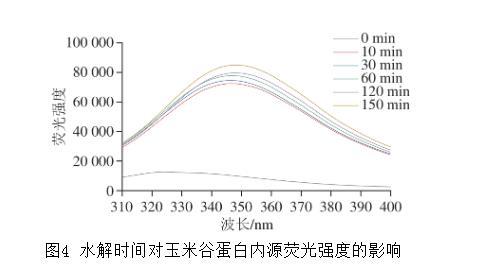 圖4水解時(shí)間對(duì)玉米谷蛋白內(nèi)源熒光強(qiáng)度的影響