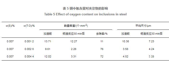 表5鋼中氧含量對(duì)夾雜物的影響