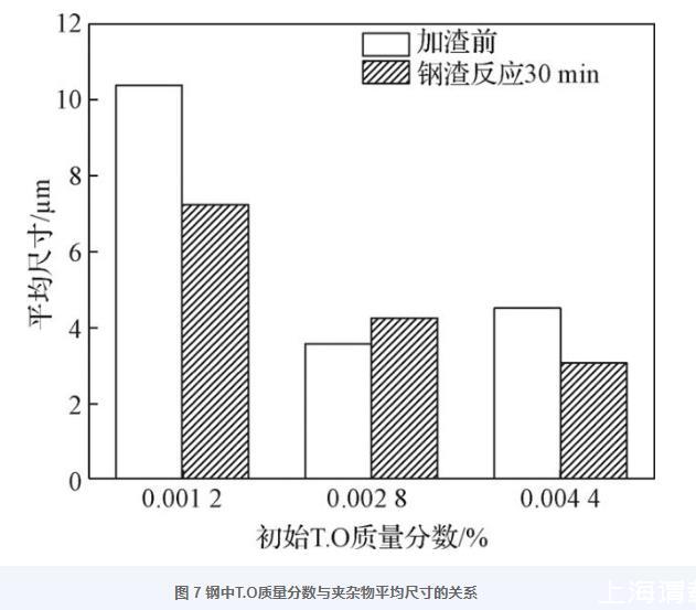 圖7鋼中T.O質(zhì)量分?jǐn)?shù)與夾雜物平均尺寸的關(guān)系