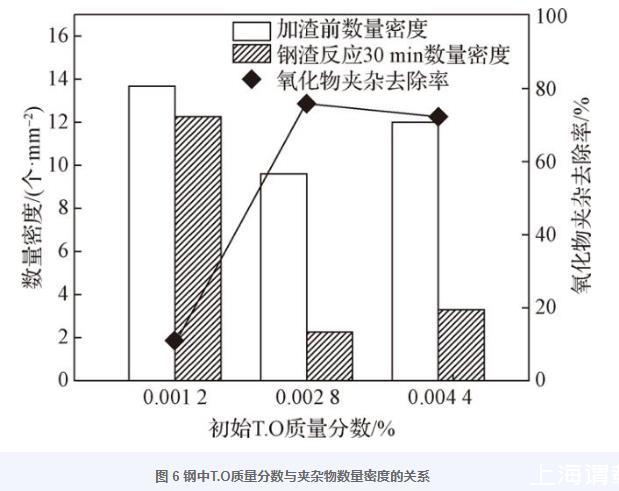 圖6鋼中T.O質(zhì)量分?jǐn)?shù)與夾雜物數(shù)量密度的關(guān)系