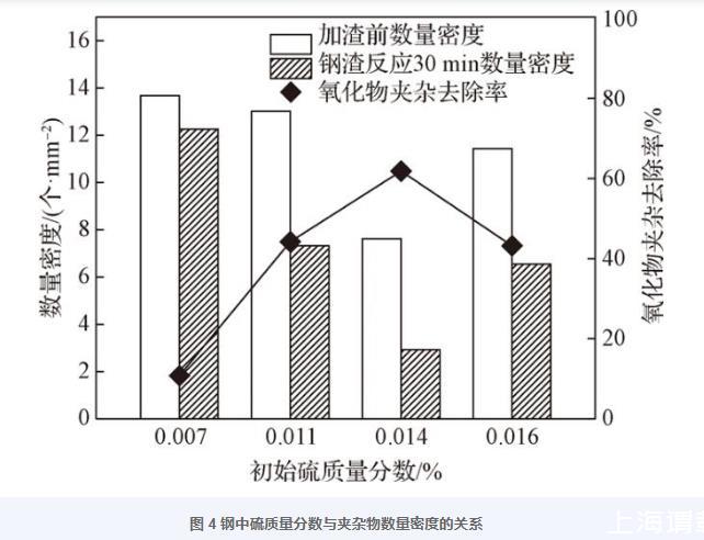 圖4鋼中硫質(zhì)量分?jǐn)?shù)與夾雜物數(shù)量密度的關(guān)系