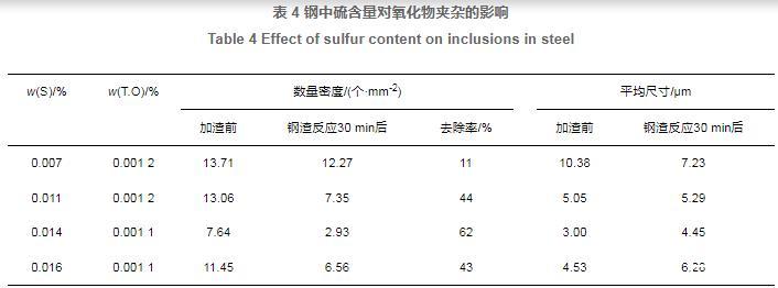 表4鋼中硫含量對(duì)氧化物夾雜的影響
