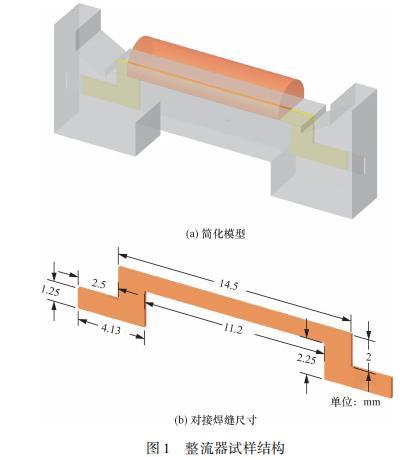 圖1(a)為基于實際釬焊情況的試樣結構簡化模型,橙色部分為釬料涂覆區域,放置在焊縫上方,材料為鎳基高溫合金;黃色部分為待焊接區域,該焊縫兩側表面互相平行,間距為0.2mm;灰色部分為母材,加熱過程中不發生形變,不與釬料相互溶解。整流器試樣結構對接焊縫尺寸如圖1(b)所示。