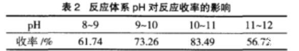 表2反應(yīng)體系pH對反應(yīng)收率的影響