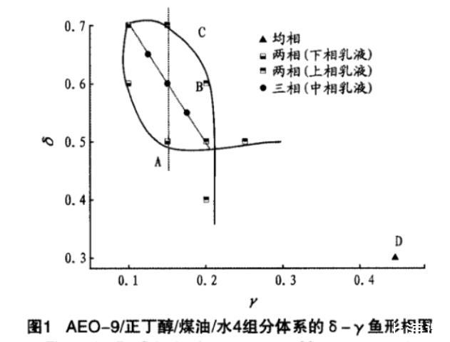 采用魚形相圖對微乳液相行為進(jìn)行描述,具有直觀明了、簡單實(shí)用等特點(diǎn)。
