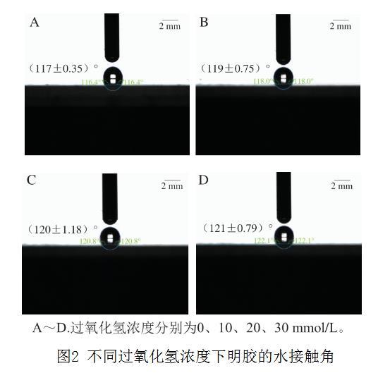 圖2 不同過氧化氫濃度下明膠的水接觸角