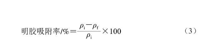 參考Tian Yan等的方法,并稍作改動。將1.3.2節新鮮制備的乳液在20 ℃下以12 000 r/min離心30 min后,將油滴和吸附在油滴上的蛋白質從水相中分離出來。隨后,用注射器抽取離心管底部的溶液,并用0.22 μm濾膜過濾。明膠吸附率按式(3)計算: