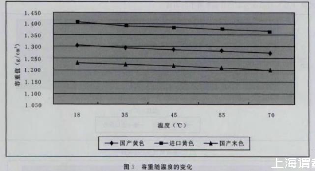 4)按以上步驟分別測量18~70℃的容重(見表3)。