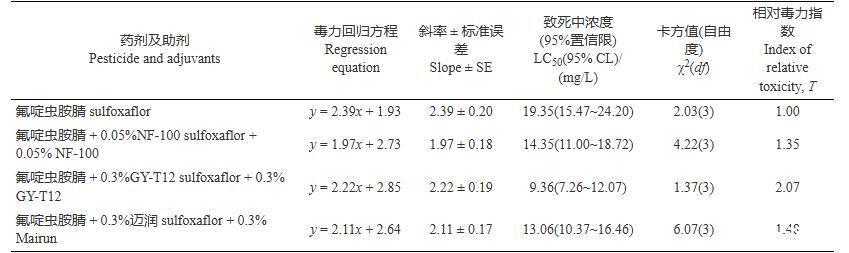 2.5噴霧助劑對(duì)氟啶蟲胺腈的毒力增效作用