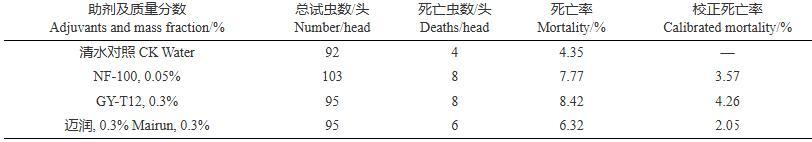 表3 3種助劑對(duì)蘋果黃蚜的致死率