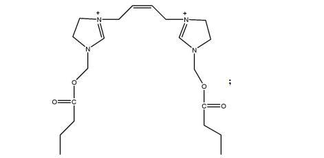 1,4-二((丁酰氧基)-3-甲基咪唑啉)丁烯的制備方法,包括:N-羥甲基咪唑啉和酰氯在四氫呋喃中反應,旋蒸得到產物,產物經洗滌后,加入正己烷和1,4-二溴丁烯攪拌反應,過濾后得到1,4-二((丁酰氧基)-3-甲基咪唑啉)丁烯。